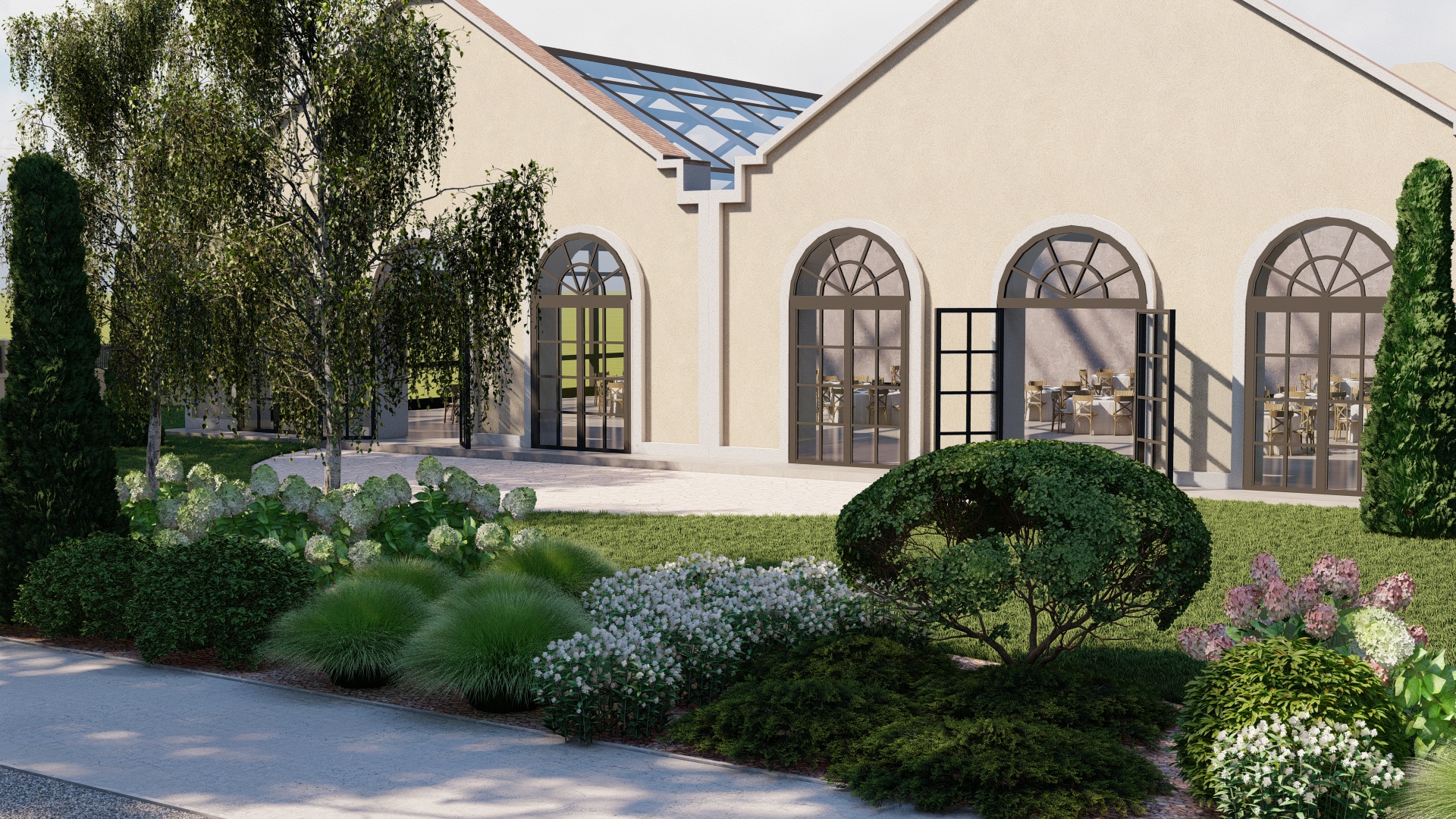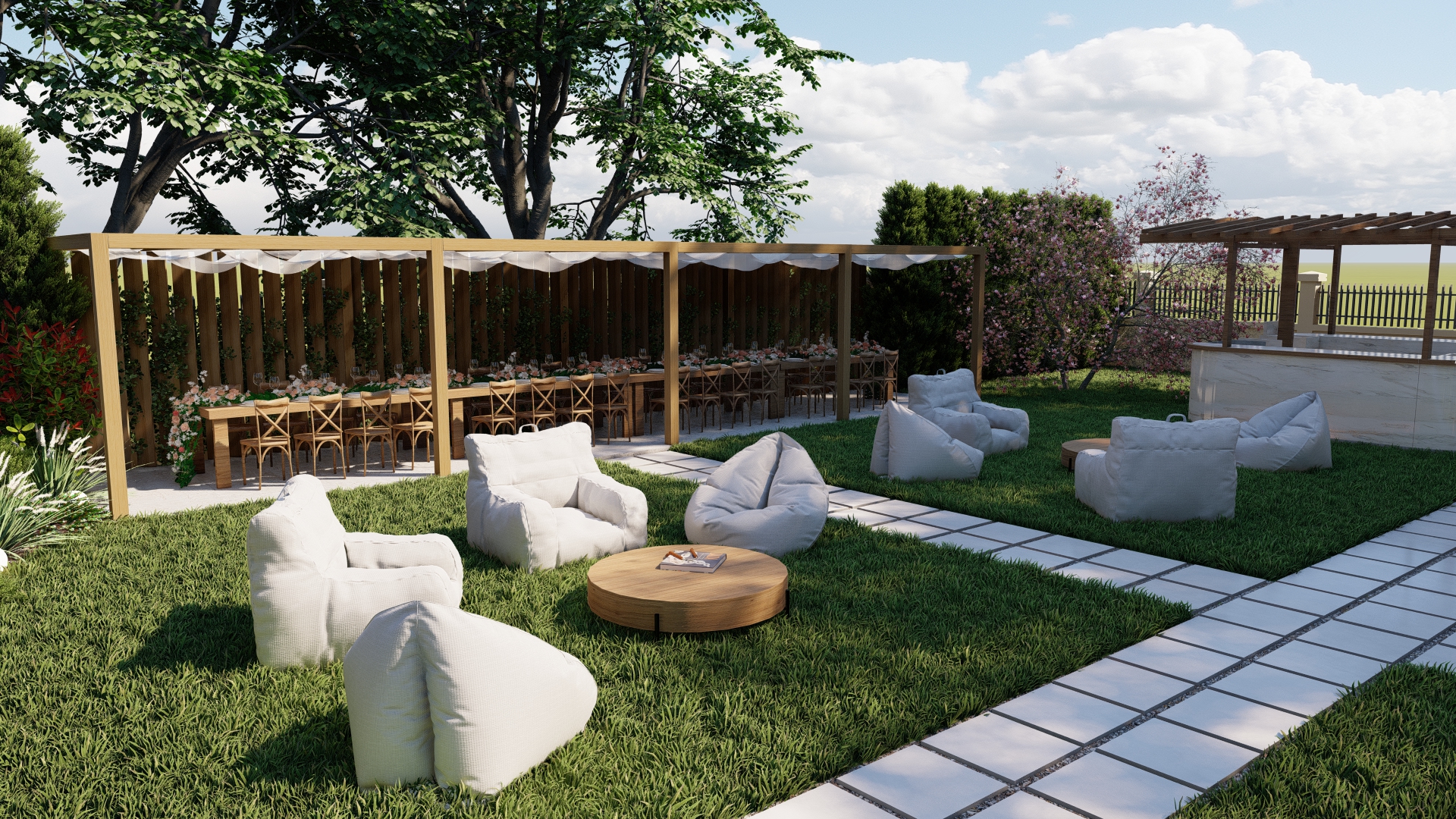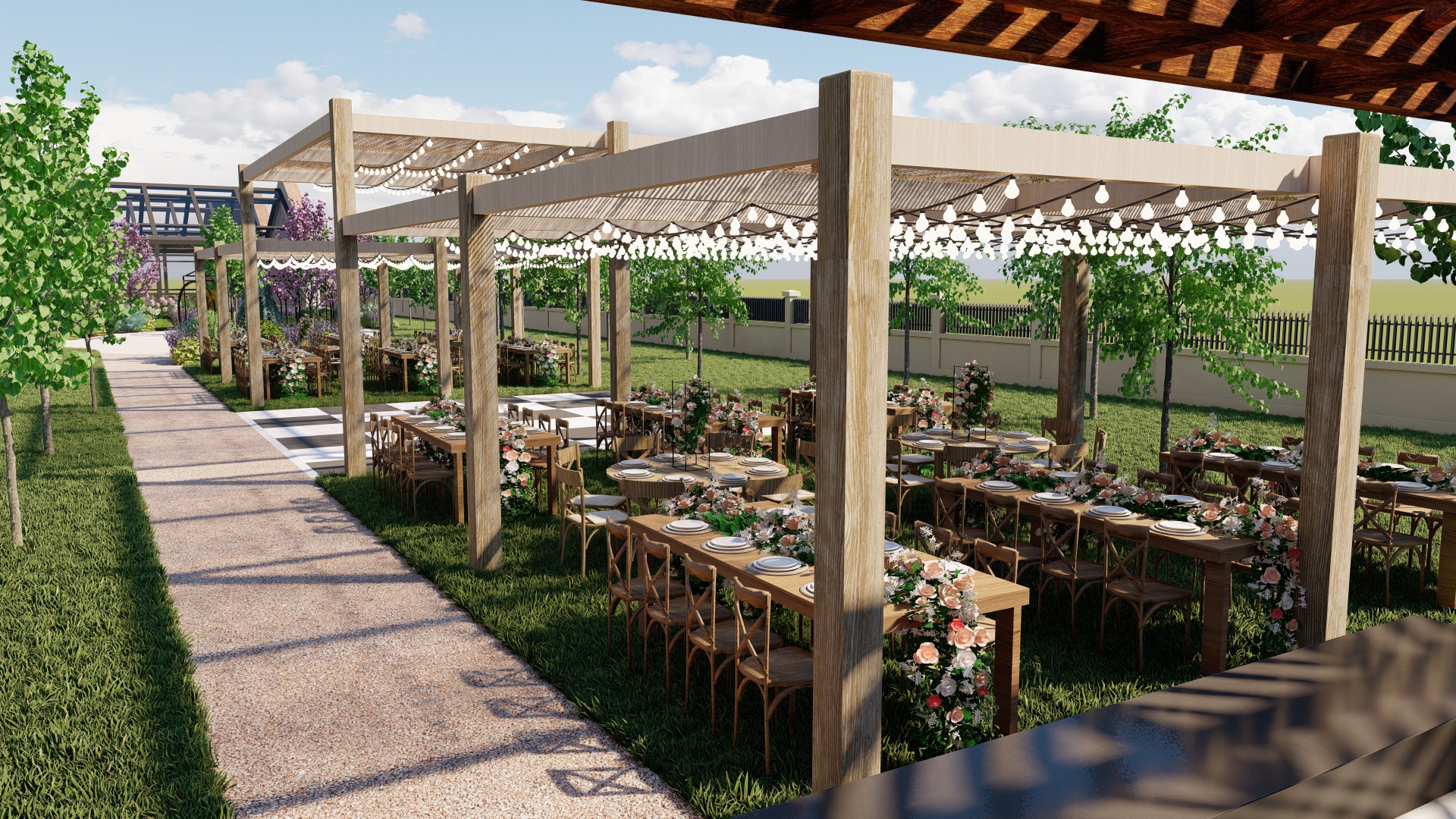 Amenajarea propusă transformă livada într-un spațiu multifunctional destinat evenimentelor, unde natura devine fundalul principal al experiențelor sociale și culturale. Designul urmărește crearea unui echilibru între funcționalitate și peisaj, oferind zone deschise pentru evenimente, dar și colțuri mai intime pentru relaxare.